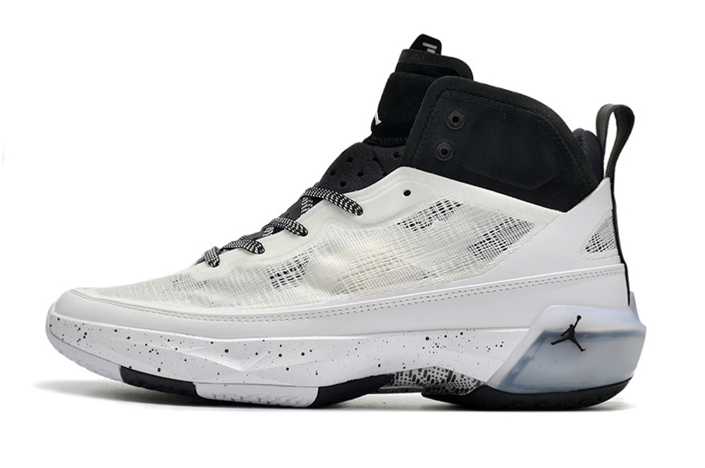 O Air Jordan 37 marchou para uma mistura de propostas desde sua estreia em junho passado, incluindo equipar o design de aros de desempenho mais avançado da marca em seu catálogo histórico de tons e moldes icônicos. Mais recentemente, surgiu o controverso esquema “Raptors” amplamente associado ao Air Jordan 7,a combinação “Oreo” comumente empregada do AJ 4 agora está tratando a 37ª silhueta de assinatura de Jordan. Revestidos em branco nítido, os painéis de malha TPU do antepé, guarda-lamas e contraforte do calcanhar conferem a tonalidade incolor, enquanto o colarinho, a construção da língua e a aba de puxar oferecem um contraste preto. Os cadarços vêm costurados nos dois padrões estabelecidos conjunto de tons enquanto o salpico preto sinônimo de colorways carrega a entressola enquanto um mini Jumpman preto adorna o clipe de calcanhar translúcido. Fornecendo um recurso diferente na linha “Oreo”, notas cítricas aparecem ao longo da aba traseira e insígnias da banda de rodagem na conclusão.