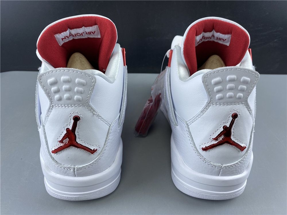 Lançado como parte de um pacote metálico de quatro peças, o Air Jordan 4 Retro 'Metallic Red' apresenta um esquema de cores de dois tons simples na clássica silhueta mid-top. O tênis utiliza uma estrutura de couro branco imaculada, acentuada com toques violetas de cores contrastantes nos ilhós moldados, unidade Air visível e hits de marcas externas, incluindo logotipos Jumpman exclusivos na etiqueta de língua e no painel de salto.
