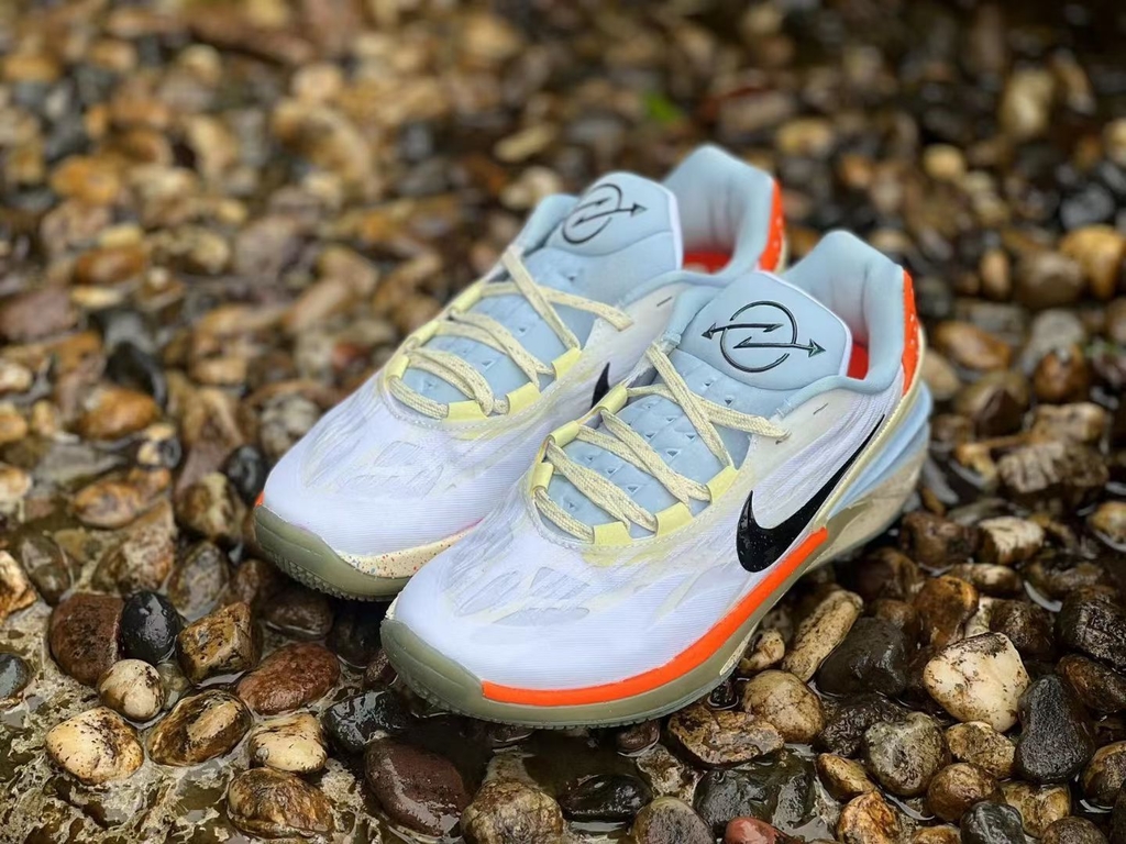 Antes de assumir uma estética de pôr do sol, uma parte superior com padrão branco assume a vanguarda com Swooshes pretos brilhantes contrastantes e sombreamento verde neon claro preenchendo os ilhós do antepé. Promovendo a parte superior levemente sombreada, um tom azul índigo carrega a construção da língua perfurada ajustada com a marca refletiva azul-petróleo e cadarços creme pontilhados com toques de violeta. Harkening o sol poente em uma paisagem desértica, o calcanhar moldado oferece um balcão de cor creme com o espectro lilás que preside retomando no clipe com um toque raro de laranja. A última tonalidade de abóbora também desliza na parte superior e no calcanhar enquanto sob os pés, a entressola exibe um arranjo salpicado do espectro tonal mencionado acima encontrado em todo o modelo.