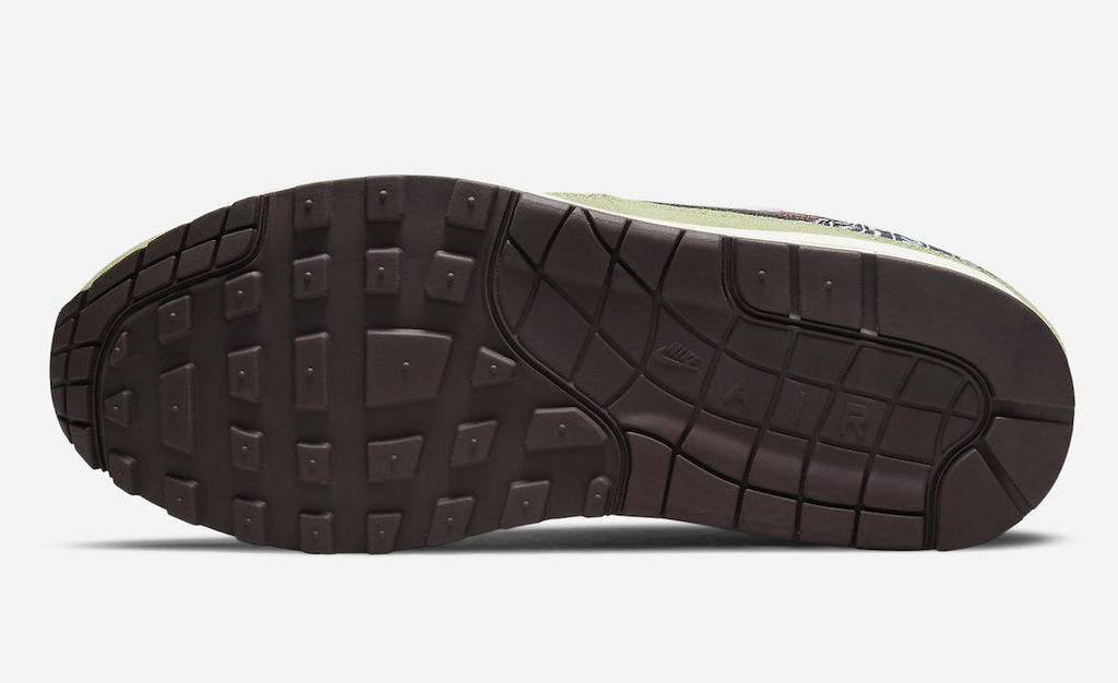 O Concepts x Nike Air Max 1 SP 'Mellow' apresenta um design eclético inspirado nos festivais de música do final dos anos 60. A varejista de Boston veste o corredor retrô em jeans tie-dye azul, forrado em veludo cotelê e acentuado com uma sobreposição de couro no antepé, juntamente com diferentes estampas de lenço na gola e no calcanhar. O tecido verde no guarda-lamas é inspirado em uma jaqueta M-65 de excedente militar. Swooshes incompatíveis apresentam motivos florais e listrados, enquanto a língua de veludo vermelho exibe uma etiqueta tecida com dois conceitos e marca Nike. Uma impressão sutil de respingos de lama distingue a entressola de poliuretano off-white.