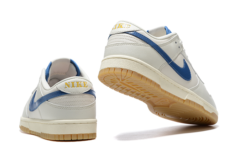 Sail, chiclete marrom claro e chiclete royal compõem a paleta de cores do sapato. A parte superior de couro branco vela deste tênis é acentuada por línguas de malha azul e Swooshes de couro caído. Ele tem uma base de couro azul holandês com sobreposições de couro branco mais escuro, cadarços, etiquetas na língua e marca no calcanhar. O design é finalizado com línguas, palmilhas e saltos que têm a marca no estilo de dólares americanos, uma entressola de vela e uma sola de borracha de goma.